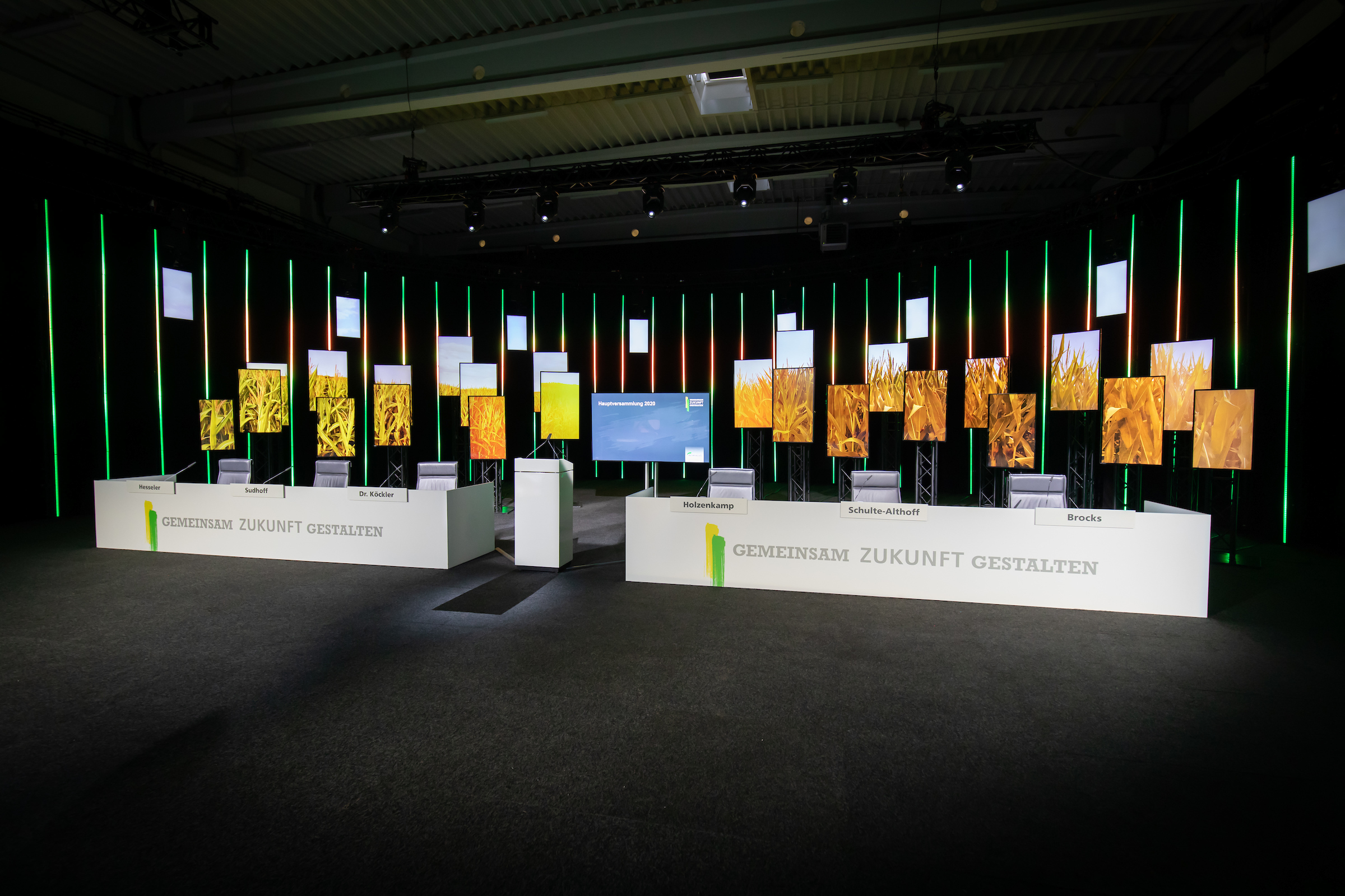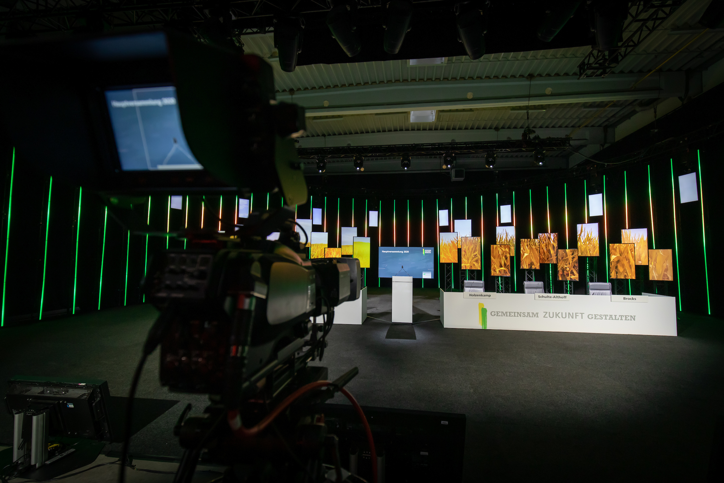 Die Hauptversammlung 2020 der AGRAVIS Raiffeisen AG wurde als virtuelles Format in einem der POOLgroup-Studios in Emsdetten umgesetzt. Die POOLgroup verantwortete – in enger Zusammenarbeit mit der AGRAVIS-Konzernagentur terres’agentur GmbH – die räumliche und technische Planung sowie die Gesamtumsetzung.