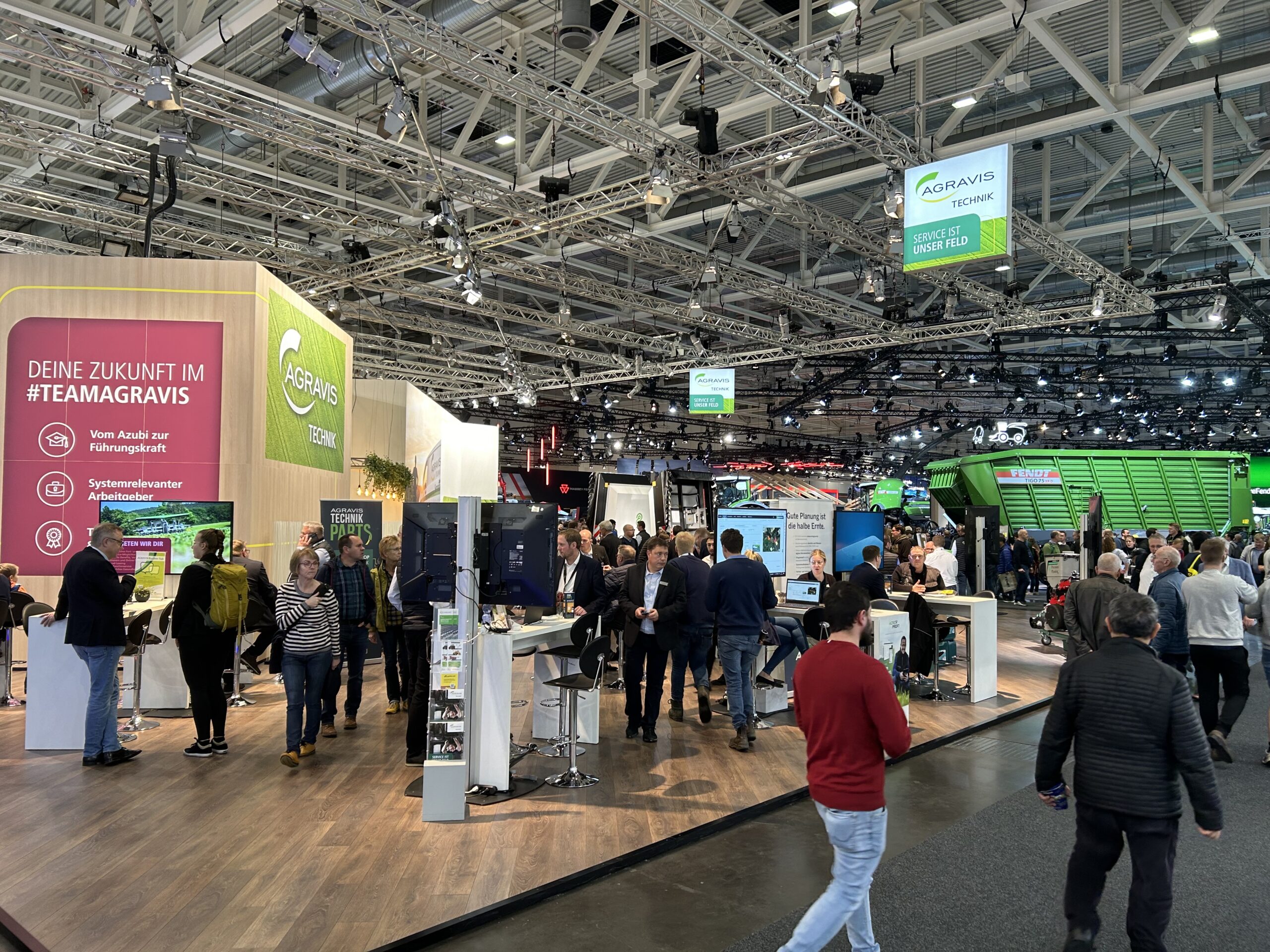 Auf den Messen präsentierten sich AGRAVIS, AGRAVIS Technik, Menke Agrar und Hamburger Leistungsfutter als starke, klar geführte Marken: architektonisch stimmig, technisch präzise umgesetzt und auf Austausch ausgelegt – mit offenen Standkonzepten, klarer Besucherführung und aufmerksamkeitsstarken Medienflächen.