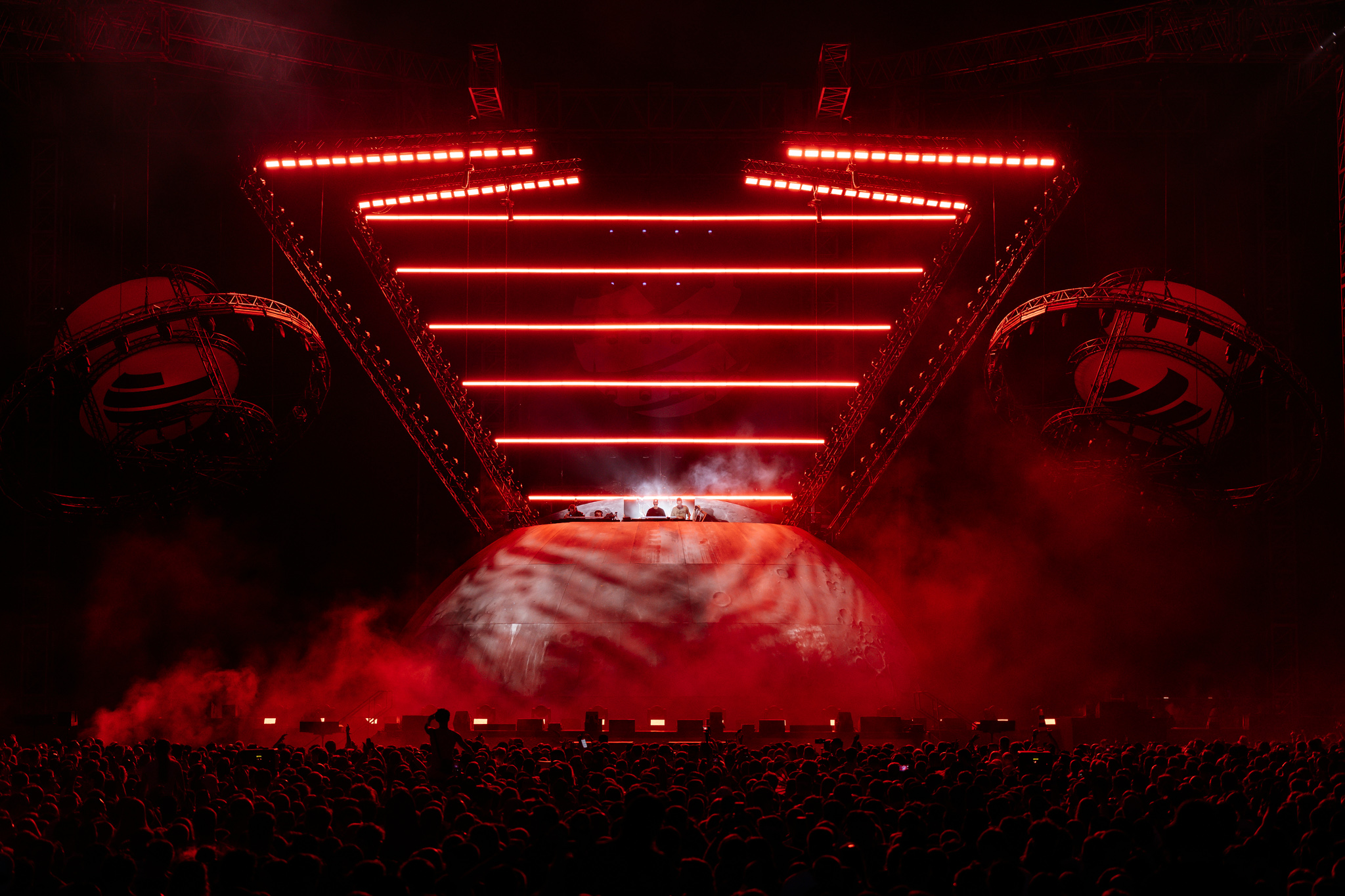 Zusätzlich verlangt das Programm nach hoher Wandlungsfähigkeit der Technik: Neben den EDM-Acts gehören regelmäßig Live-Acts wie 50 Cent oder Deichkind zum Line-up, deren Tour-Setups in die bestehende Festivalarchitektur integriert werden müssen – inklusive schneller Umbauten zwischen DJ- und Band-Setups.