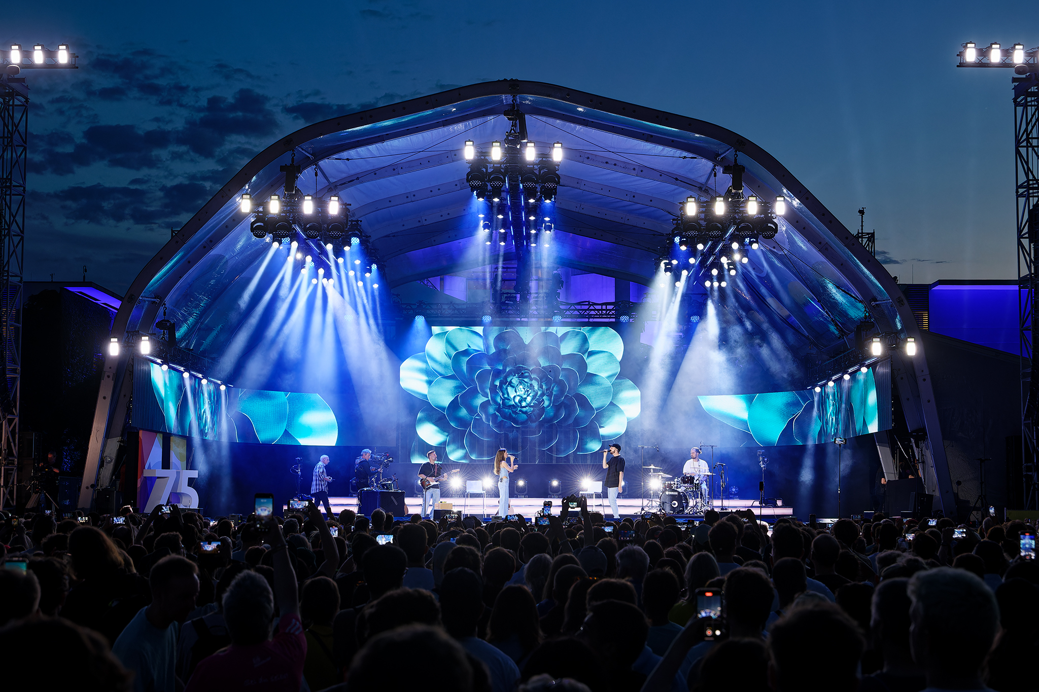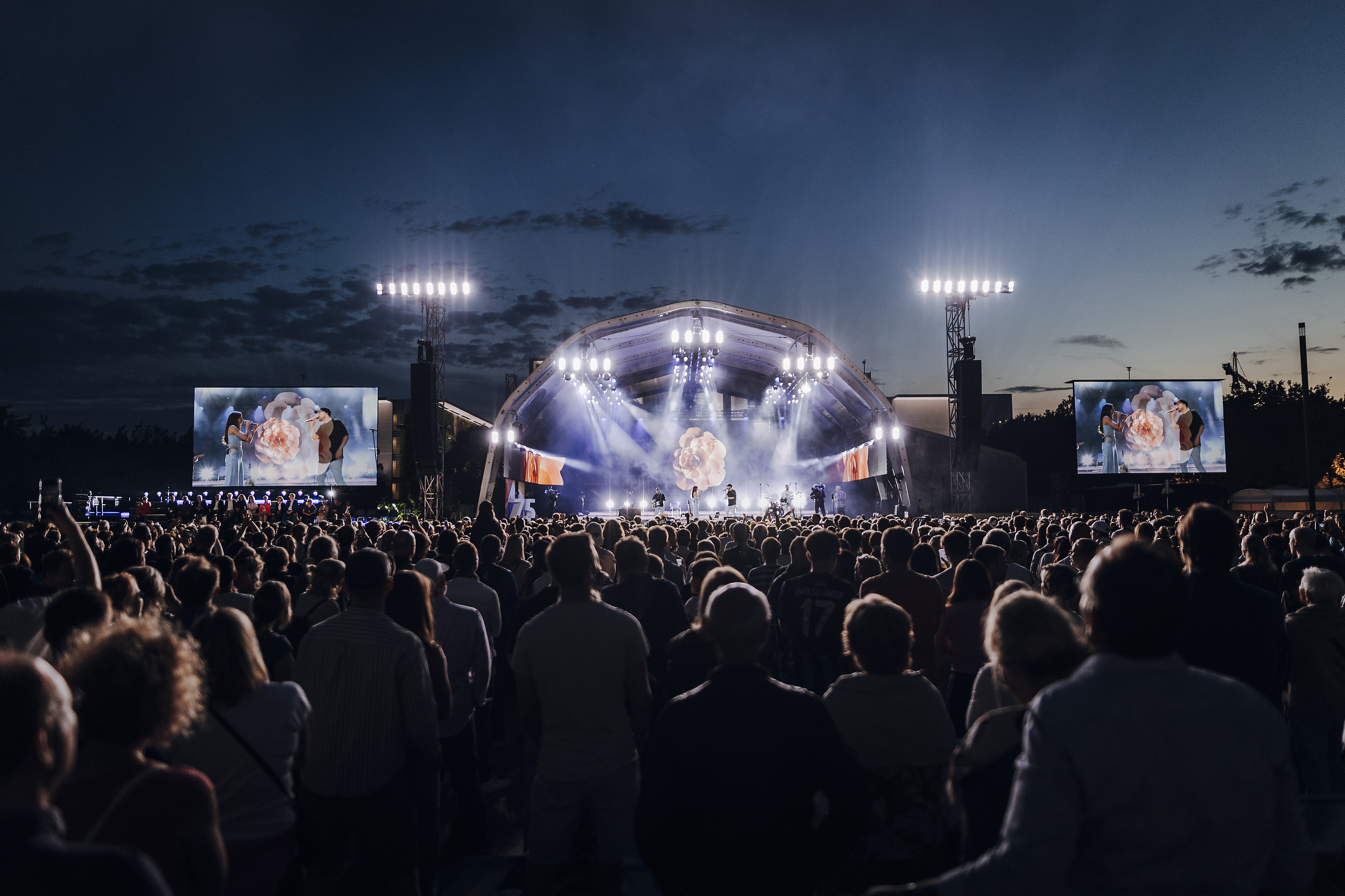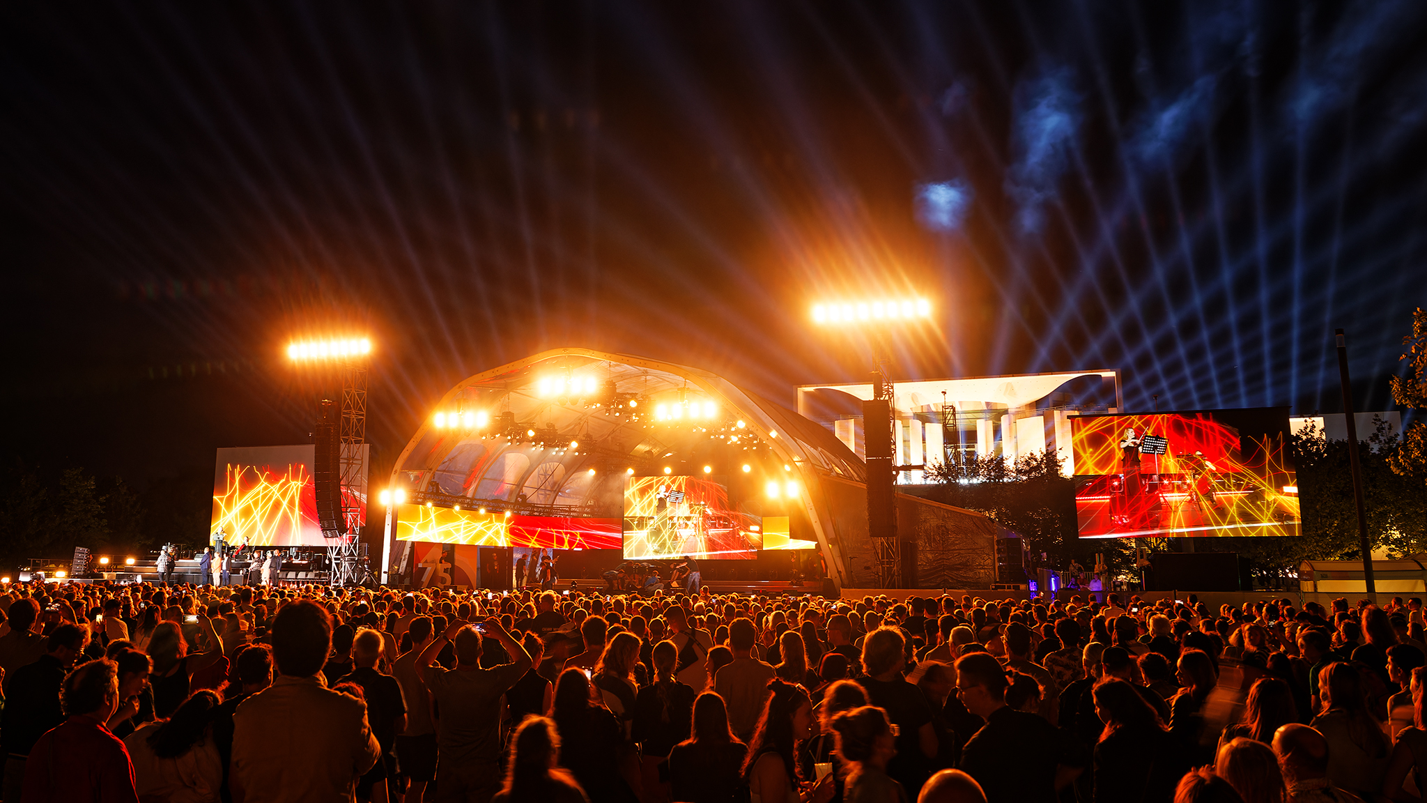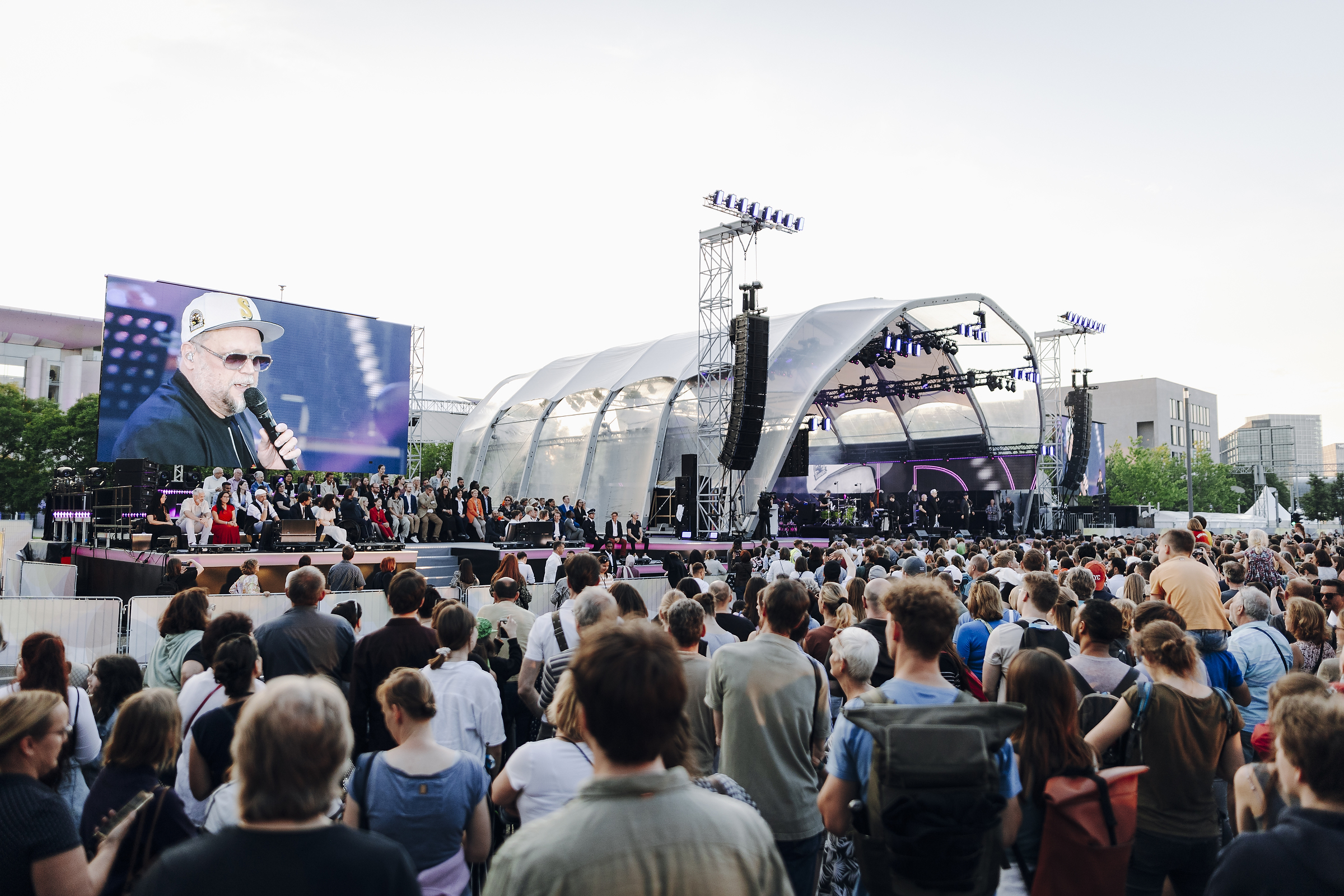Vom 24. bis 26. Mai 2024 feierten Bürger:innen im Berliner Regierungsviertel rund um Kanzleramt und Bundestag 75 Jahre Grundgesetz. Nach dem offiziellen Staatsakt am 23. Mai setzte das dreitägige Demokratiefest den gesellschaftlichen Teil des Jubiläums fort. Auftraggeber war das Bundespresseamt (BPA) in Zusammenarbeit mit der mediapool GmbH – die POOLgroup war als technischer Dienstleister für die Betreuung der Main Stage und der Bügerdialoge auf dem Platz vor dem Kanzleramt verantwortlich.