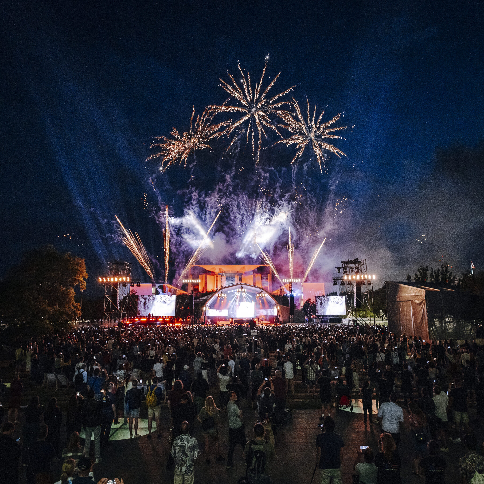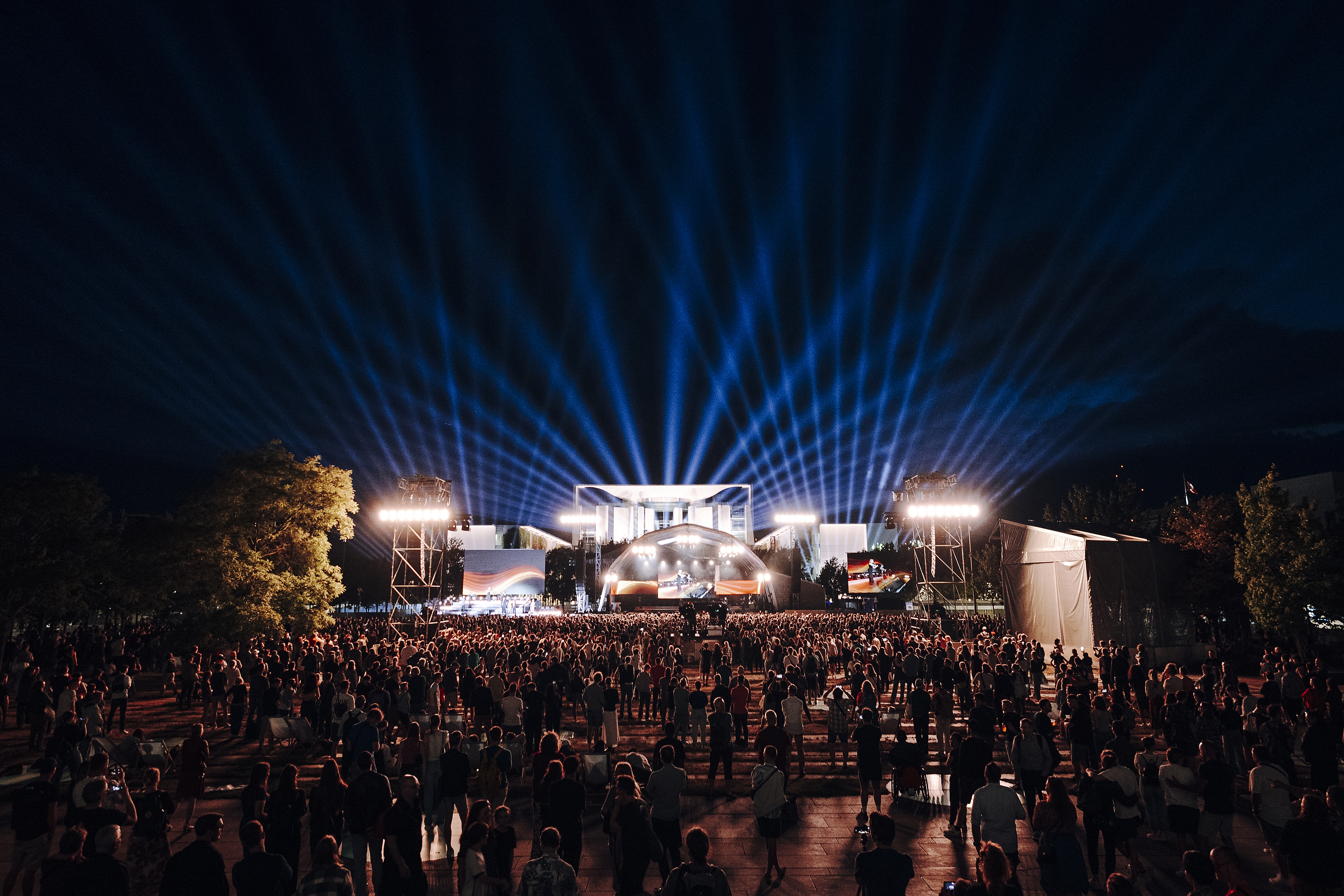 Ein zentraler Schwerpunkt lag auf der Atmosphäre und Inszenierung des Regierungsviertels: Das Bundeskanzleramt wurde stimmungsvoll illuminiert, um die Architektur in das Gesamtbild einzubinden. Auf dem Festgelände betreute die Crew Bühnen mit unterschiedlichem Programmfokus – von Politikgesprächen bis zu Livekonzerten – und sorgte für eine nahtlose technische Koordination zwischen Künstler:innen, Acts und Programmpunkten.