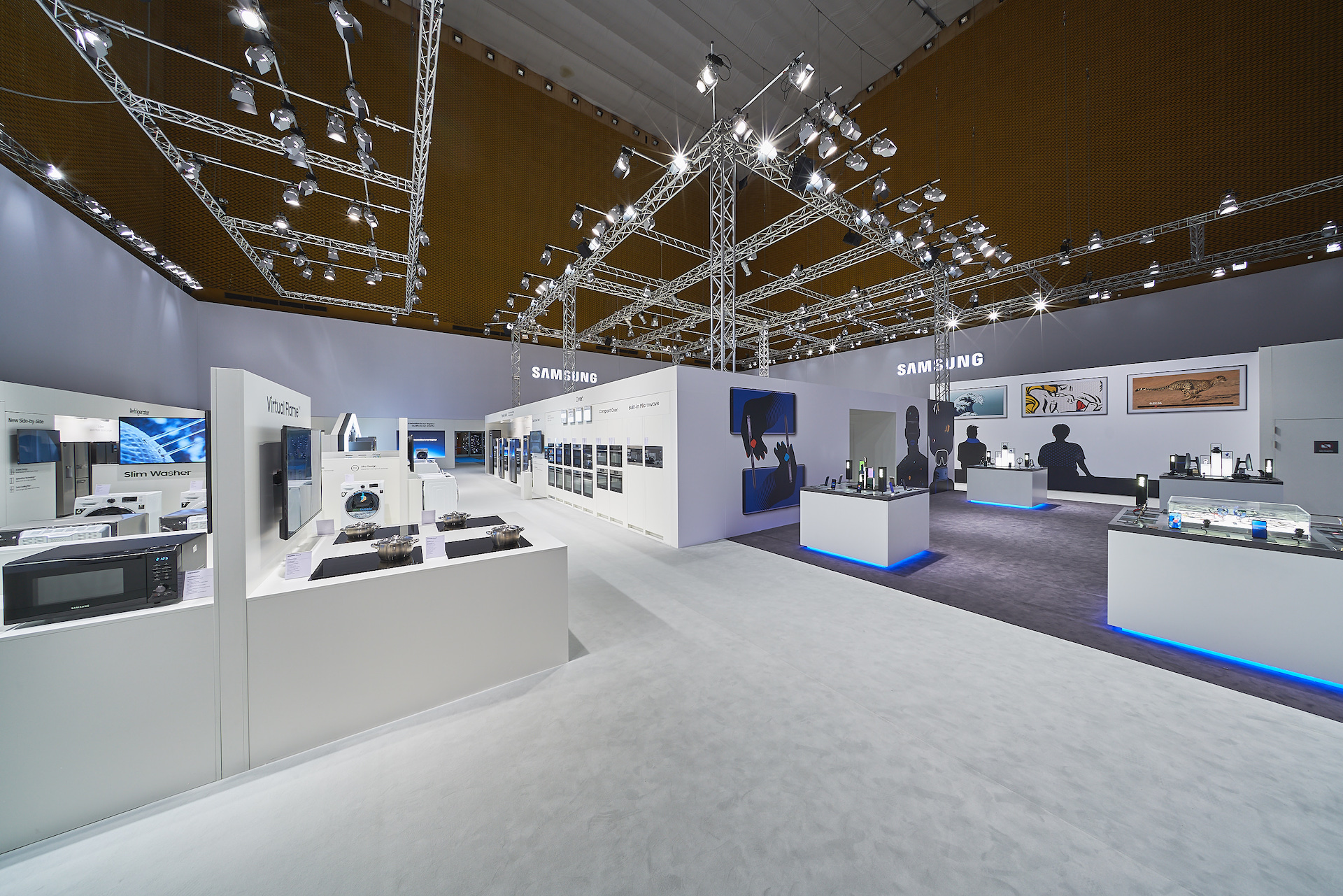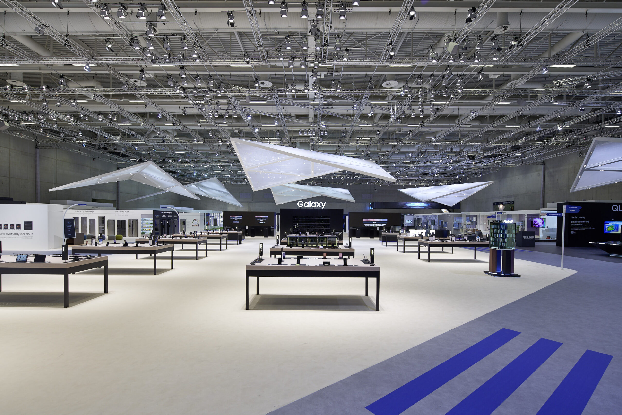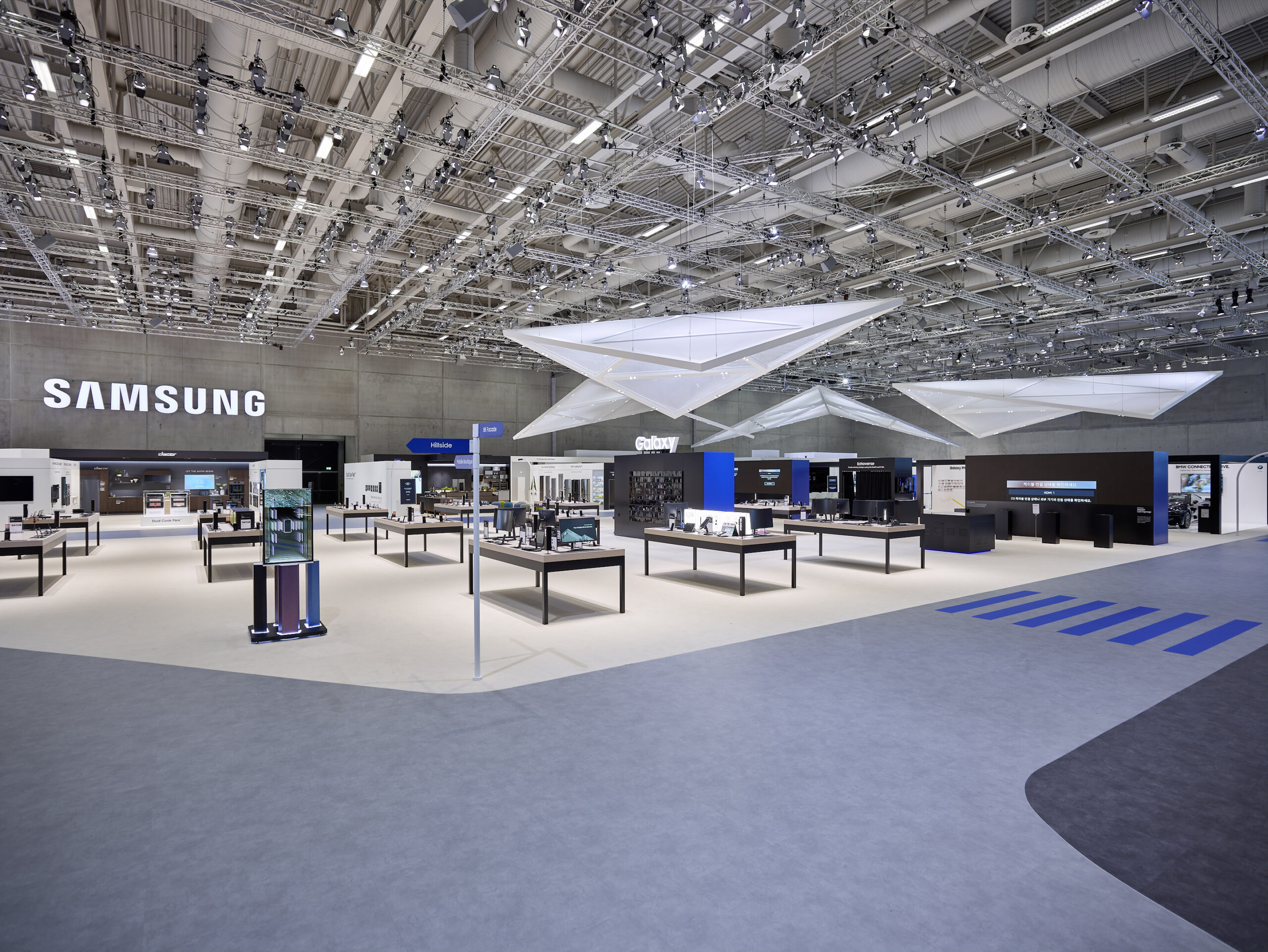 Samsung nutzt seine Auftritte, um technologische Innovationen erlebbar zu machen – immer mit dem Ziel, Produkte, Design und Marke zu einer immersiven Experience zu verbinden. Ob auf Messen oder in temporären Showrooms: Das Erlebnis steht im Vordergrund. Dabei werden Inhalte wie AI, Smart Home, Sustainability oder 5G-Technologien visuell und interaktiv inszeniert.