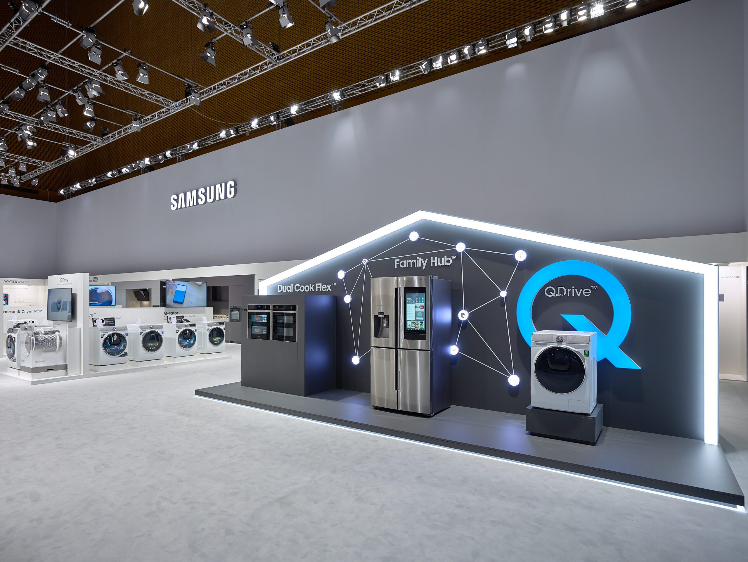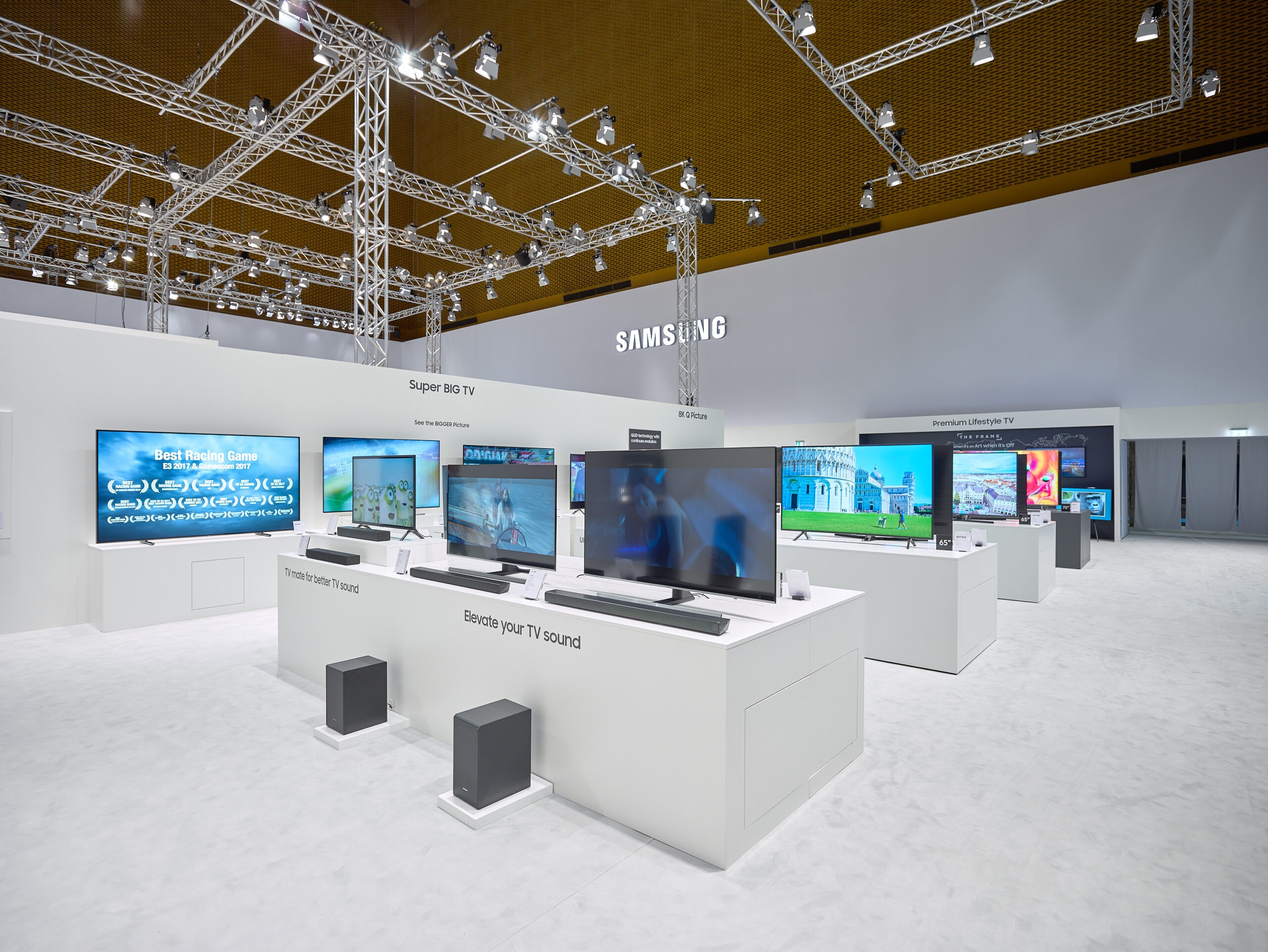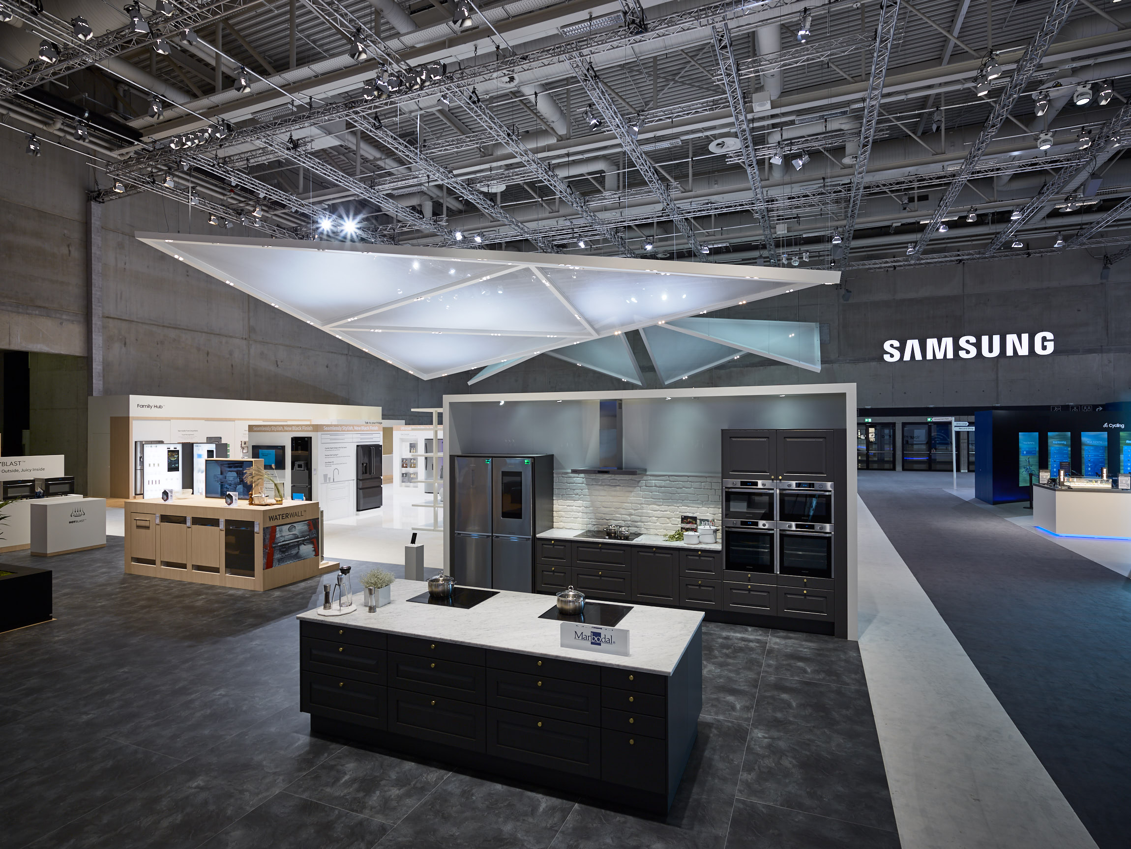 Samsung nutzt seine Auftritte, um technologische Innovationen erlebbar zu machen – immer mit dem Ziel, Produkte, Design und Marke zu einer immersiven Experience zu verbinden. Ob auf Messen oder in temporären Showrooms: Das Erlebnis steht im Vordergrund. Dabei werden Inhalte wie AI, Smart Home, Sustainability oder 5G-Technologien visuell und interaktiv inszeniert.