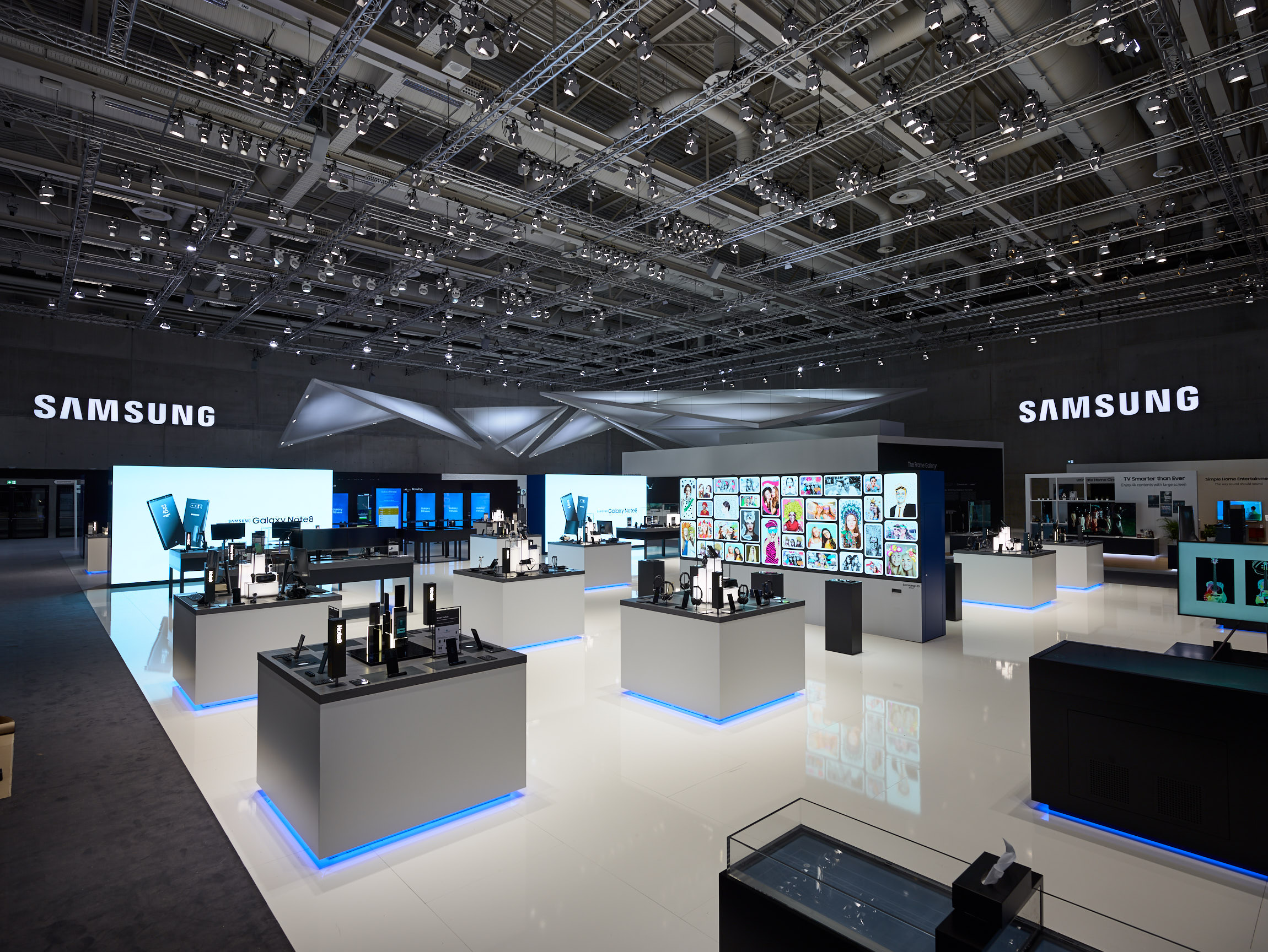 Seit über 20 Jahren begleitet die POOLgroup Messeauftritte und Corporate-Events von Samsung – von der IFA in Berlin über den Mobile World Congress in Barcelona bis hin zu internationalen Formaten wie dem Samsung European Forum. Auftraggeber sind dabei in erster Linie die Kommunikationsagenturen Cheil Germany und ad modum, mit denen eine vertrauensvolle Partnerschaft besteht.