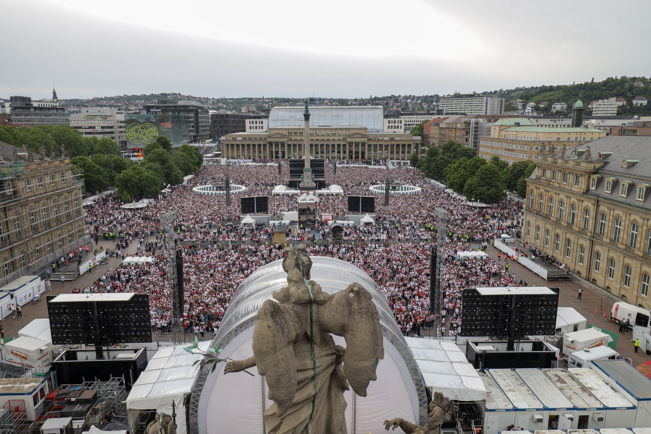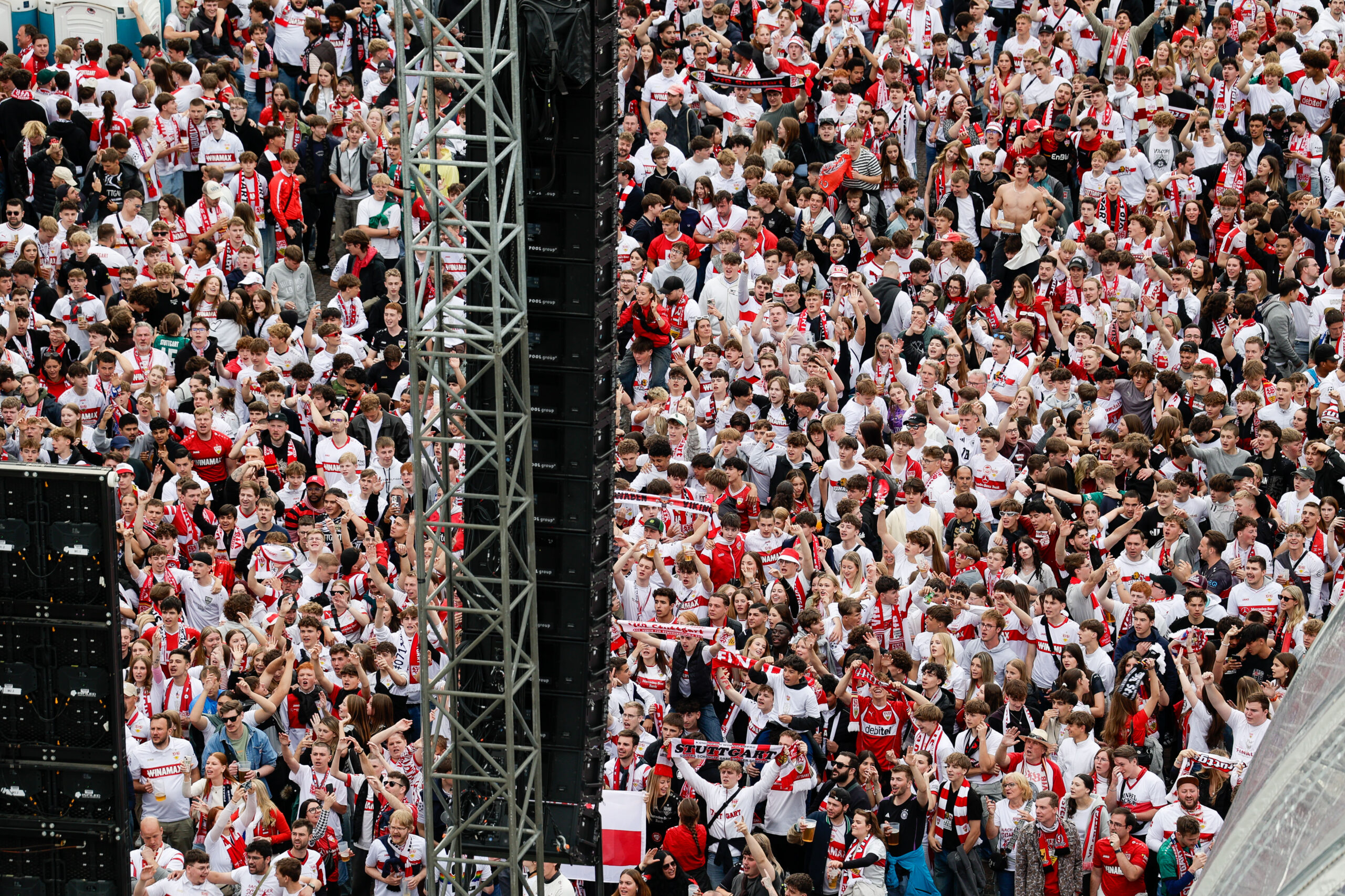 Ziel war es, den Fans in Stuttgart ein sicheres, emotionales und technisch präzise inszeniertes Public Viewing zu bieten. Der VfB Stuttgart beauftragte die POOLgroup als Generaldienstleister mit der vollständigen Planung und Umsetzung des Public Viewings sowie der anschließenden Mannschaftsfeier am Folgetag. Beide Veranstaltungen sollten organisatorisch, technisch und atmosphärisch zu einer Einheit verschmelzen.